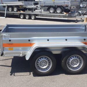 Remolque caja abierta con dimensiones 3.000 x 1.700 x 500, 2 ejes de 1.000 kg marca alko, freno de inercia y estacionamiento, ruedas por debajo de la carrocería, laterales abatibles y desmontables, ruedas 155/80 r13, rueda de repuesto, rueda jockey automática, lanza en v reforzada, pintura metalizada,etc…