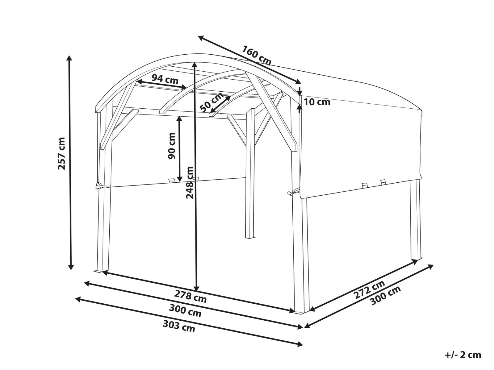 Dimensiones: 303 cm (ancho) x 300 cm (profundidad) x 257 cm (alto)