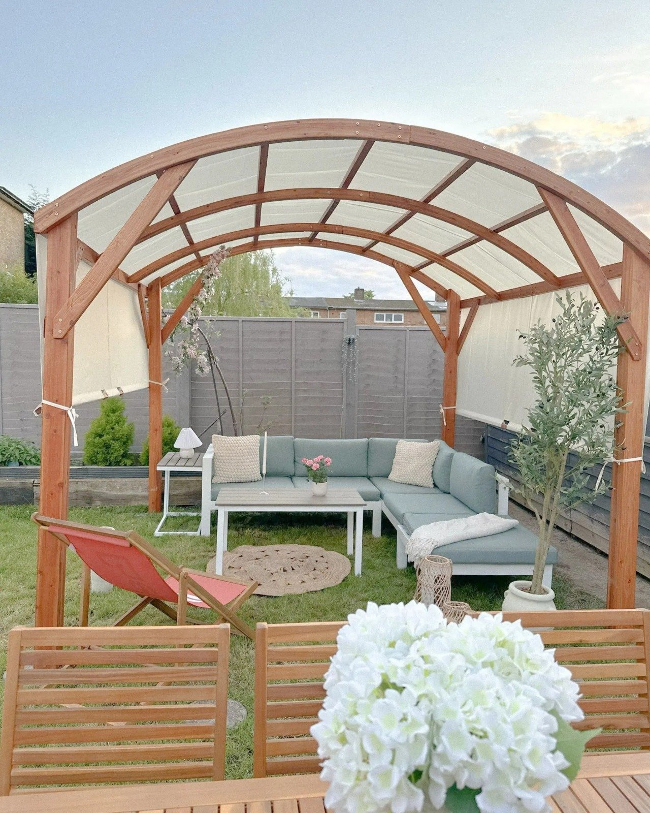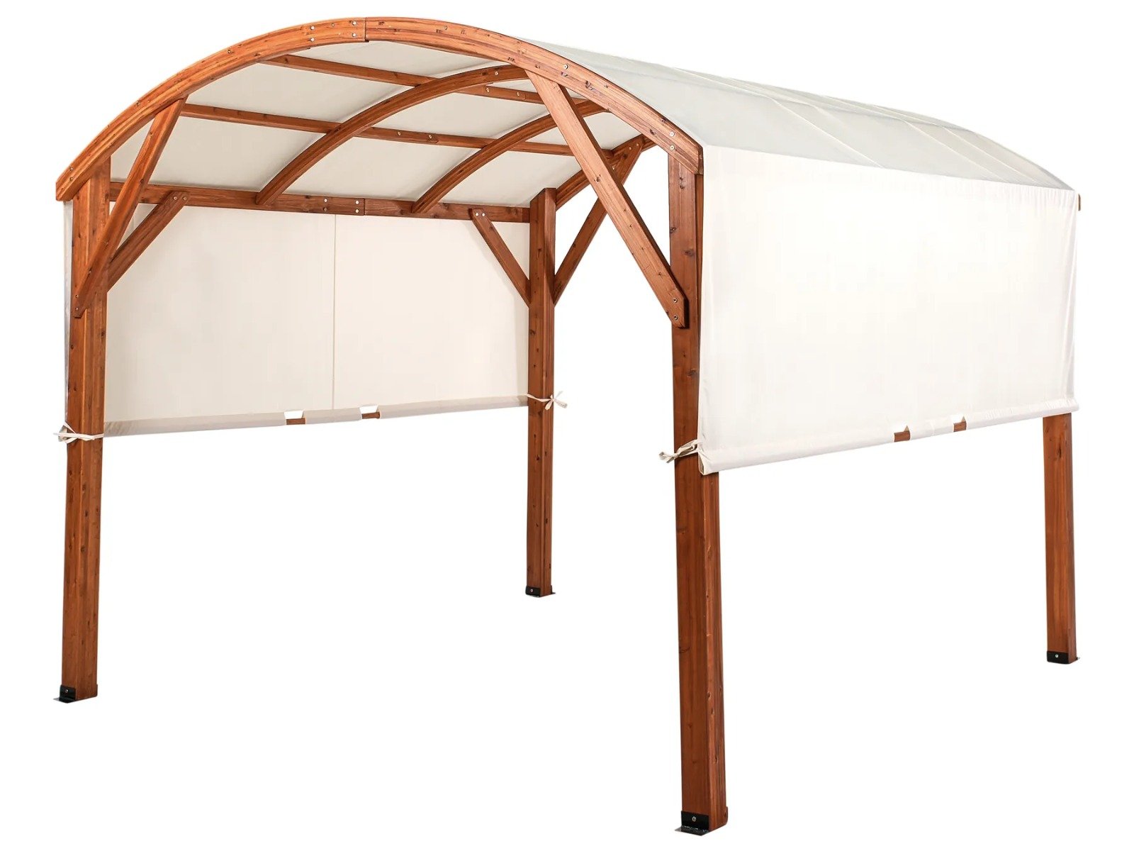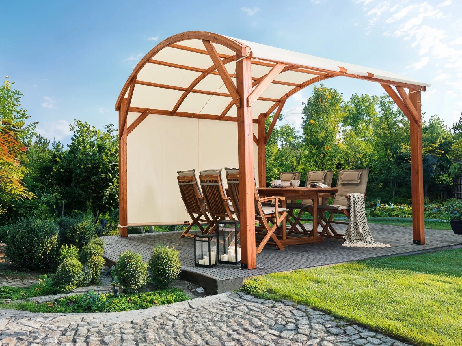 Este gazebo es la solución perfecta para crear un espacio acogedor y natural en tu exterior. Con su elegante estructura de madera de abeto y su diseño curvo, aporta un toque de calidez y estilo a cualquier jardín o terraza.