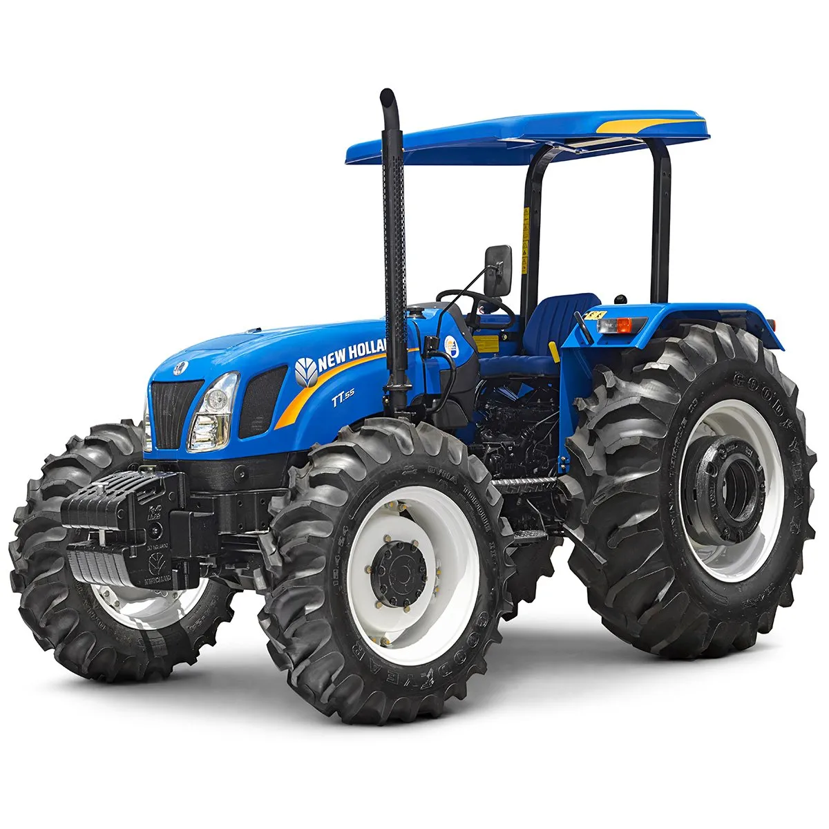 Marca NEW HOLLAND Modelo NEF. Diésel, cilindros turbo-cargado, Potencia de 55CV. Cilindrada de 2.9 litros, a 2.300 rpm. Con una reserva de par del 27%, y un par máximo de 230 Nm. a 2300 rpm. Sistema de Refrigeración por agua, con filtro de aire tipo seco., Capacidad del tanque de combustible de 63 Litros.